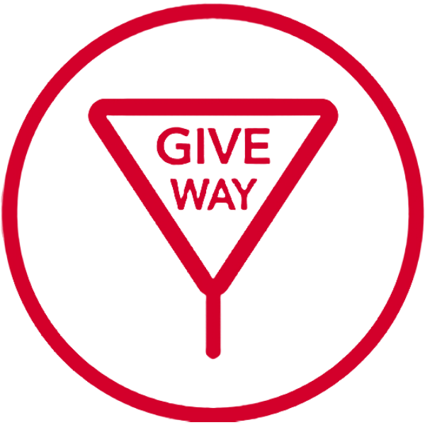GIVEWAY - Slow down and stop if traffic is approaching from the right or left, and follow the Give Way Rules.
